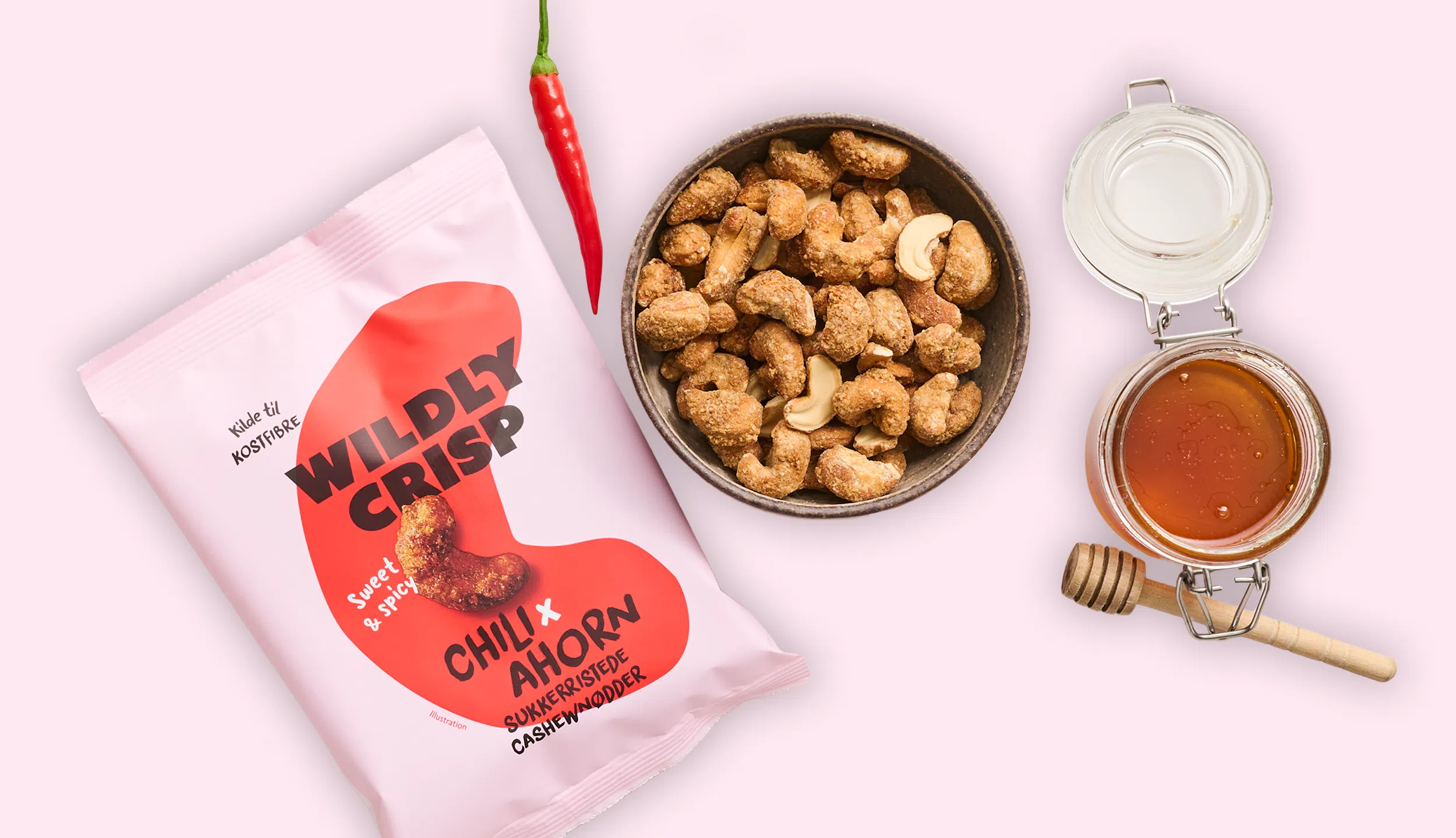 Wildly Crisp Chili x Ahorn er en del af vores serie af nødder med sassy attitude – skabt til øjeblikke hvor nydelse gerne må være både lidt sød, lidt spicy og helt sin egen.